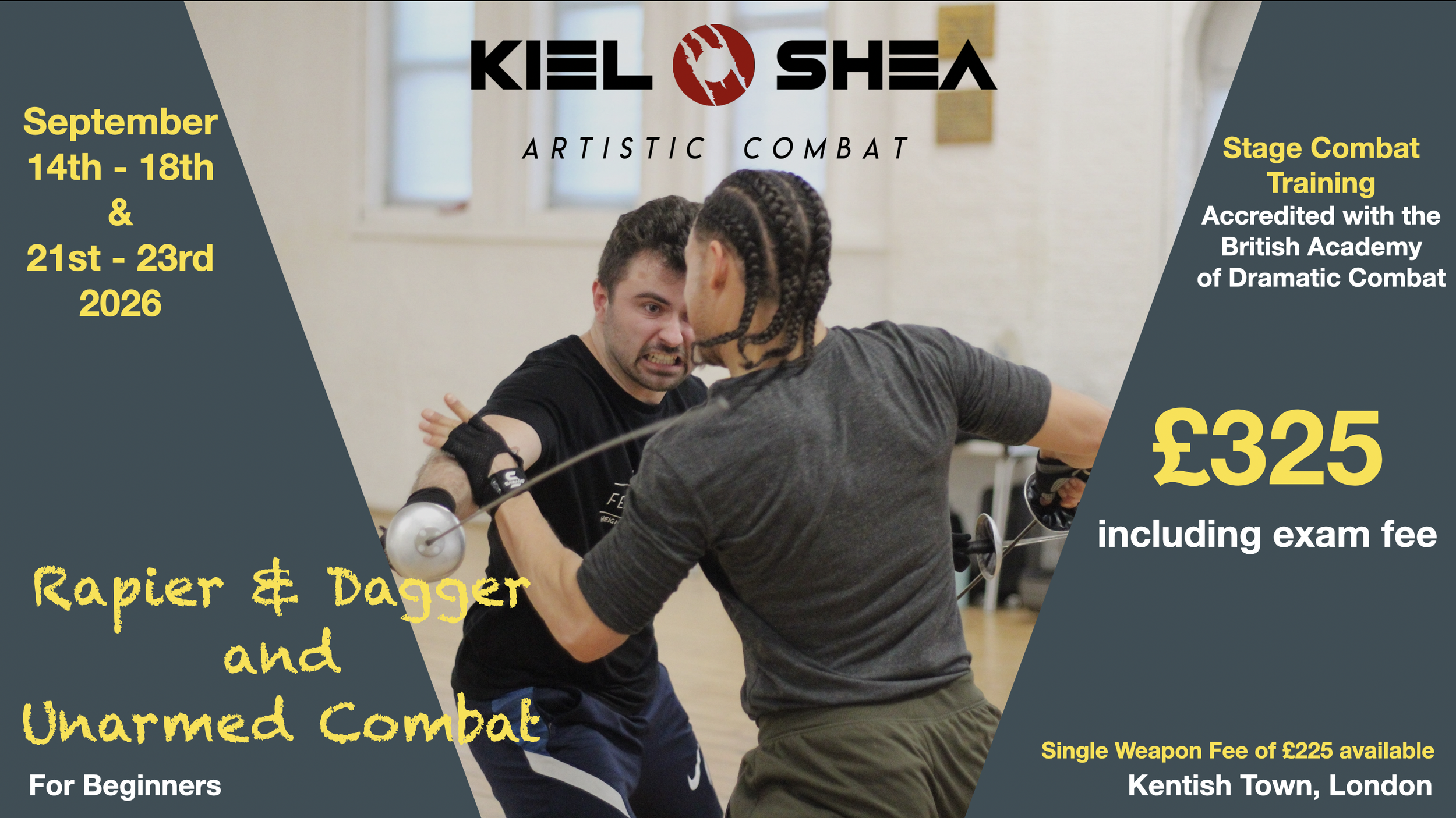 Students will have the opportunity at the end of the course to certify with the British Academy of Dramatic Combat at Standard level. The test fee is included in the course price.
